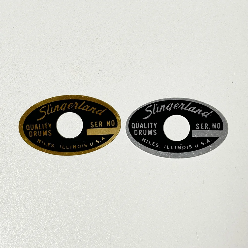 Oval Drum Badge 1962-1970 Niles ILLINOIS 70's Through Early 80's Slingerland Niles Black & Brass / Black and Silver Badge